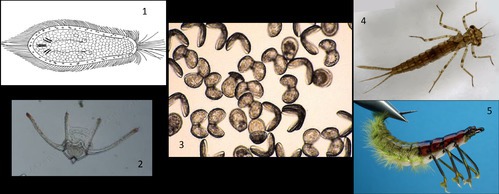 Совместите названия беспозвоночных животных и фотографии их личинок.