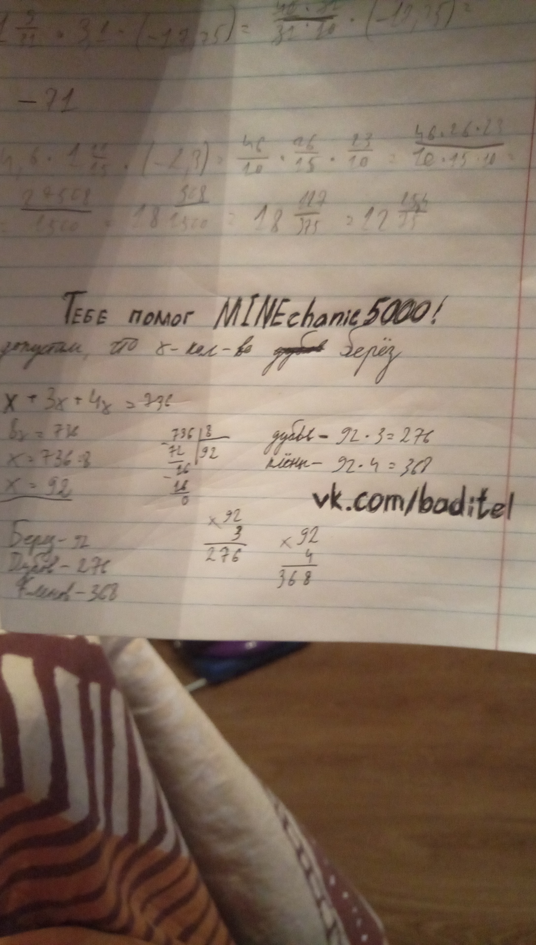 всего деревьев 736 берез неизвестно дубов неизвестно но говорится что в 3 раза больше чем берез кленов неизвестно но говорится что в 4 раза больше чем берез сколько берез дубов и кленов отдельно решить уровнением