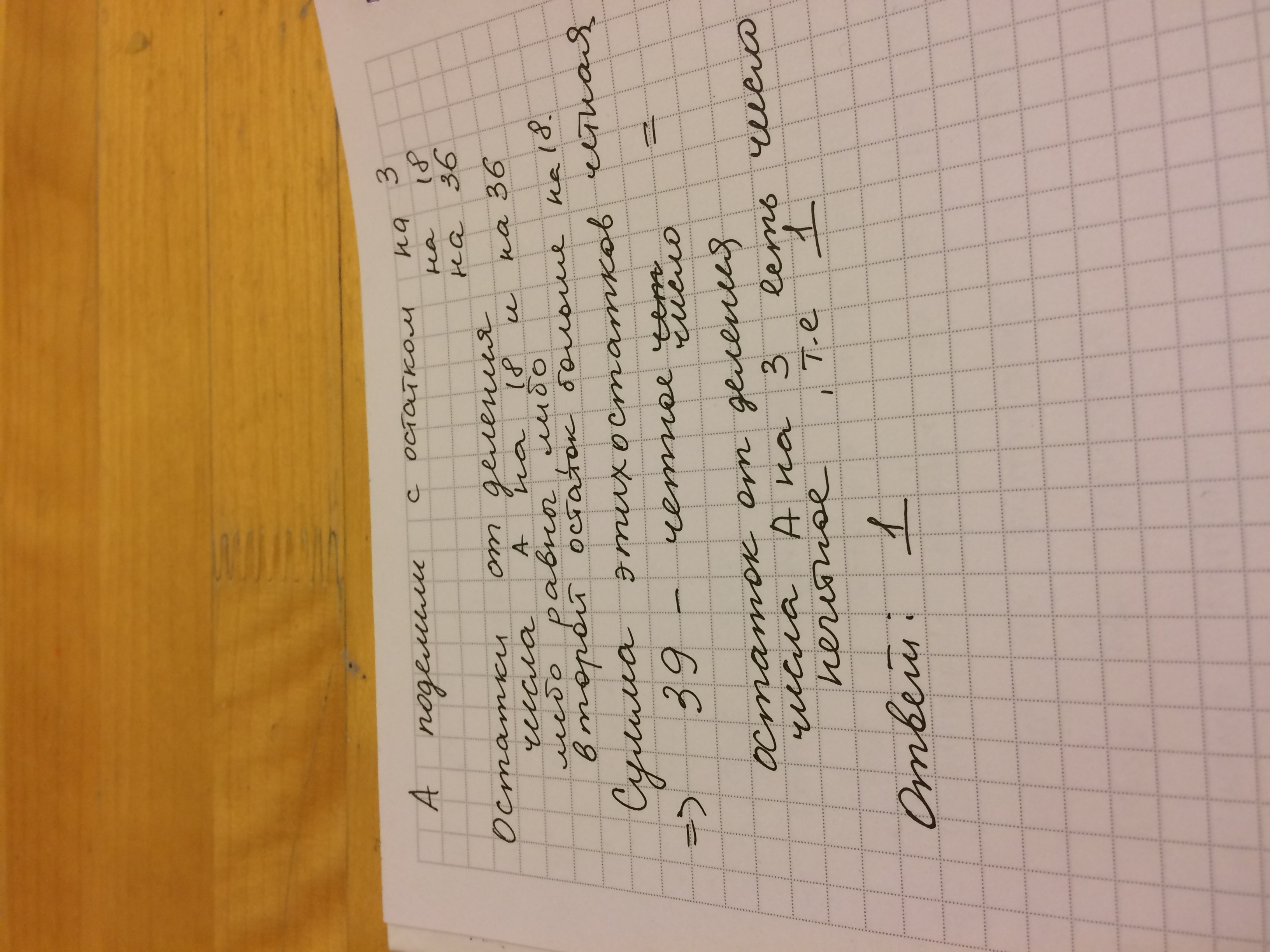 Некоторое натуральное число A поделили с остатком на 3, 18 и на 36. Сумма этих трех остатков оказалась равна 39. Найдите остаток от деления числа A на 3.