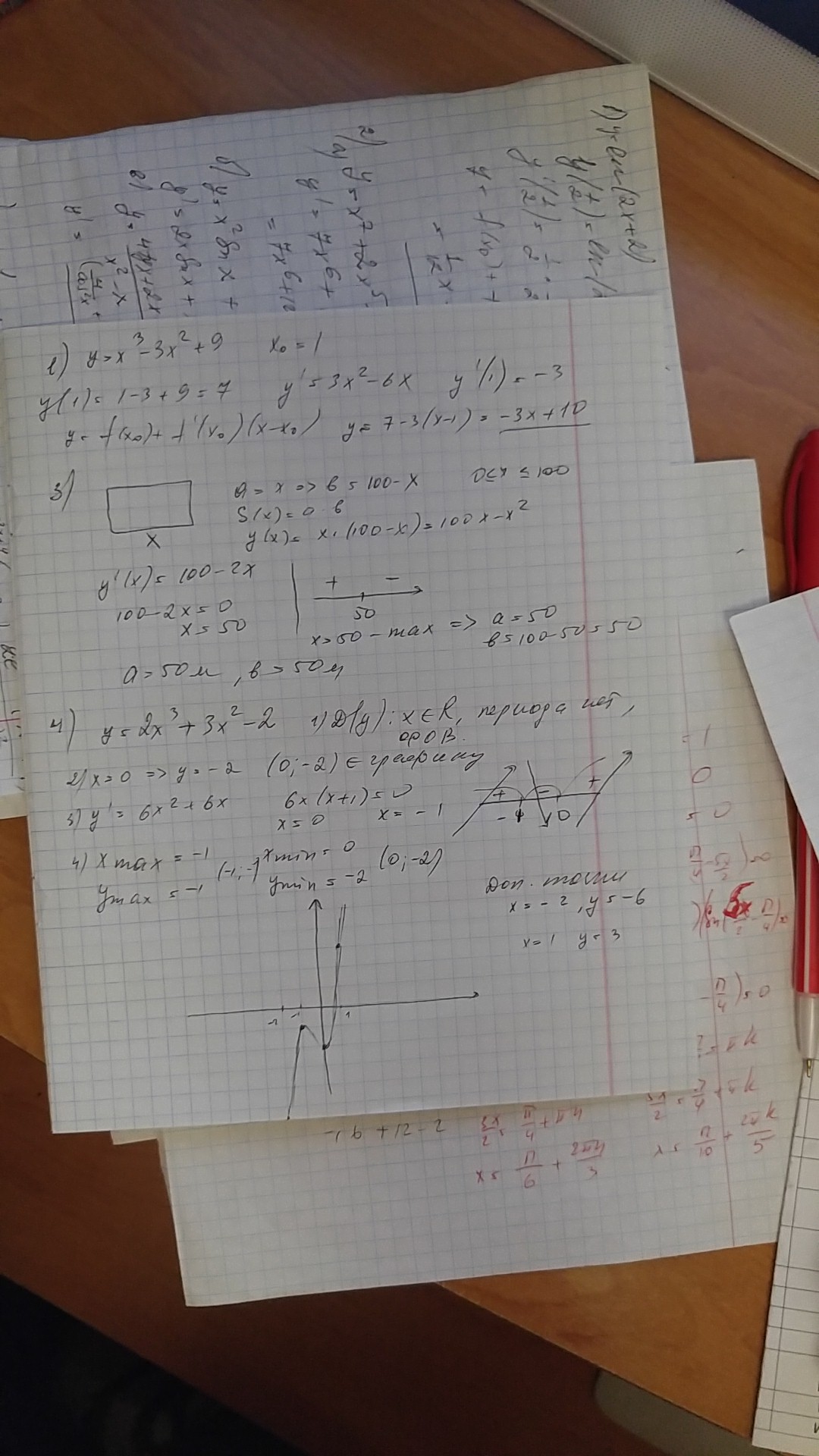 4.исследуйте функцию y=2x^3+3x^2-2 и постройте её график.