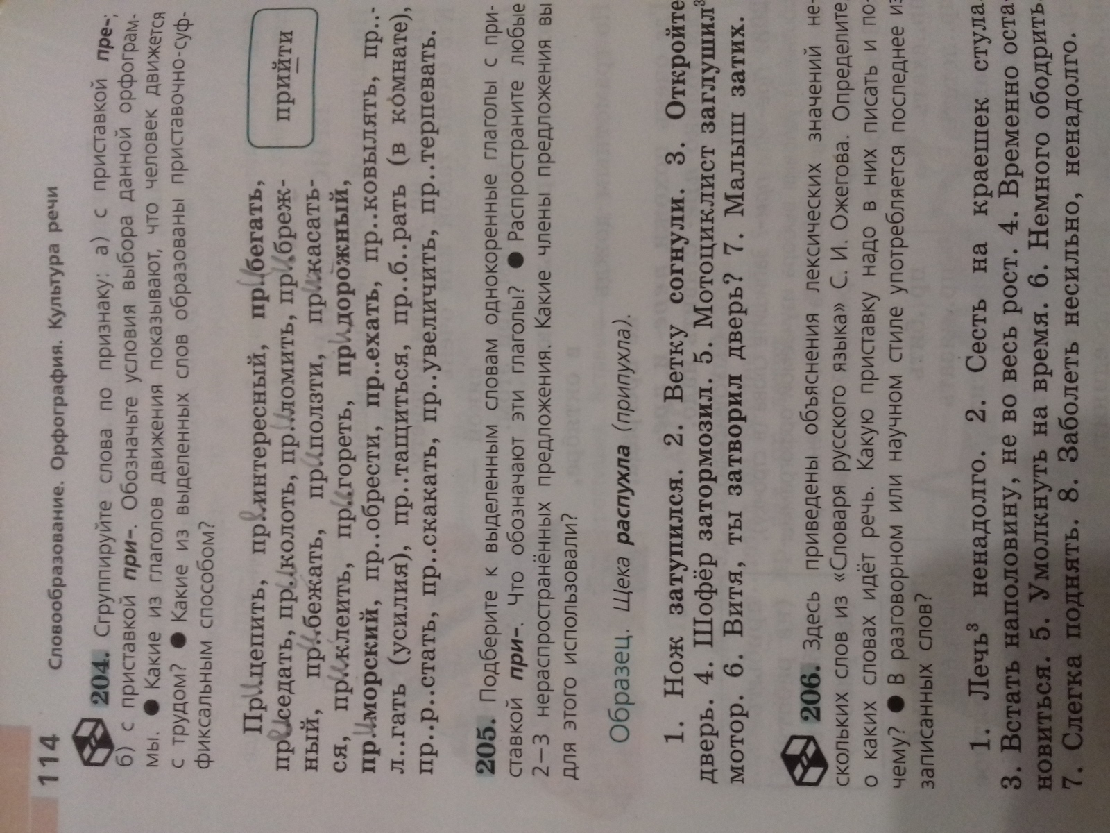 приобрести, приехать, приковылять, прилагать, притащить, прибраться, прирастать(не очень слово поняла), прискакать, преувеличить, претерпевать