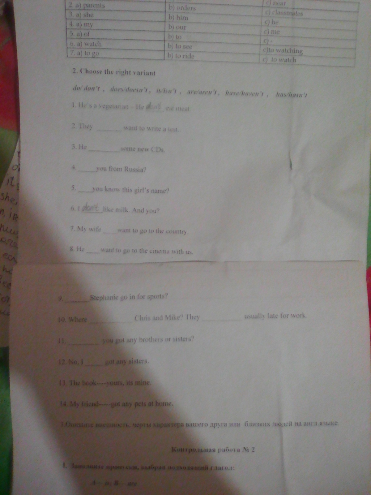 1) doesn't 2) don't , 3) hasn't, 4) Are, 5) Do, 6) don't, 7) doesn't, 8)doesn't, 9)Does, 10) are, are, 11) Have, 12) haven't, 13) isn't, hasn't.