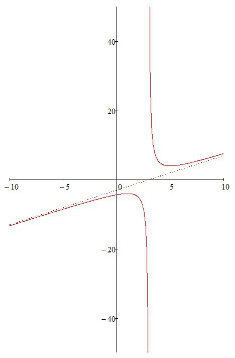 7) Асимптоты: а) вертикальные х=3, б) горизонтальные -+ бесконечность в) наклонные 1