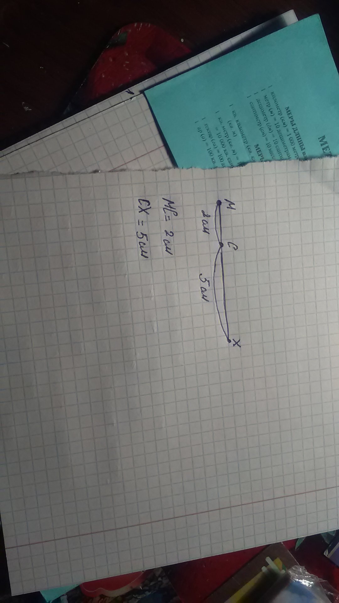 начерти отрезок МХ и отметь на нём точку С. Измерь, отрезки МХ и СХ. Запиши результаты измерений