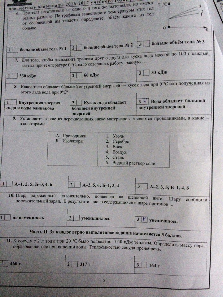 Объём первого тела будет больше, потому что его температура при сообщении одинакового количества тепла меньше, чем у остальных