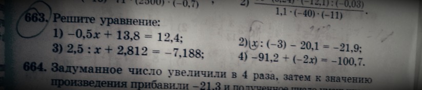 1) -0,5х+13,8=12,4 2) х:(-3)-20,1=-21,9 3) 2,5:х+2,812=-7,188