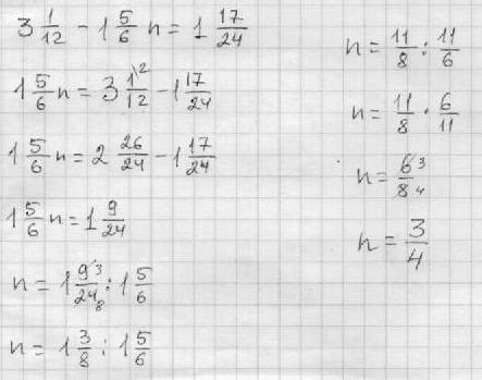 помогите пожалуйста решить уравнение ( решить так чтобы не было в уравнении отрицательных чисел) мы такое еще не проходили. 3 цел 112- 1 цел 56n=1 цел 1724