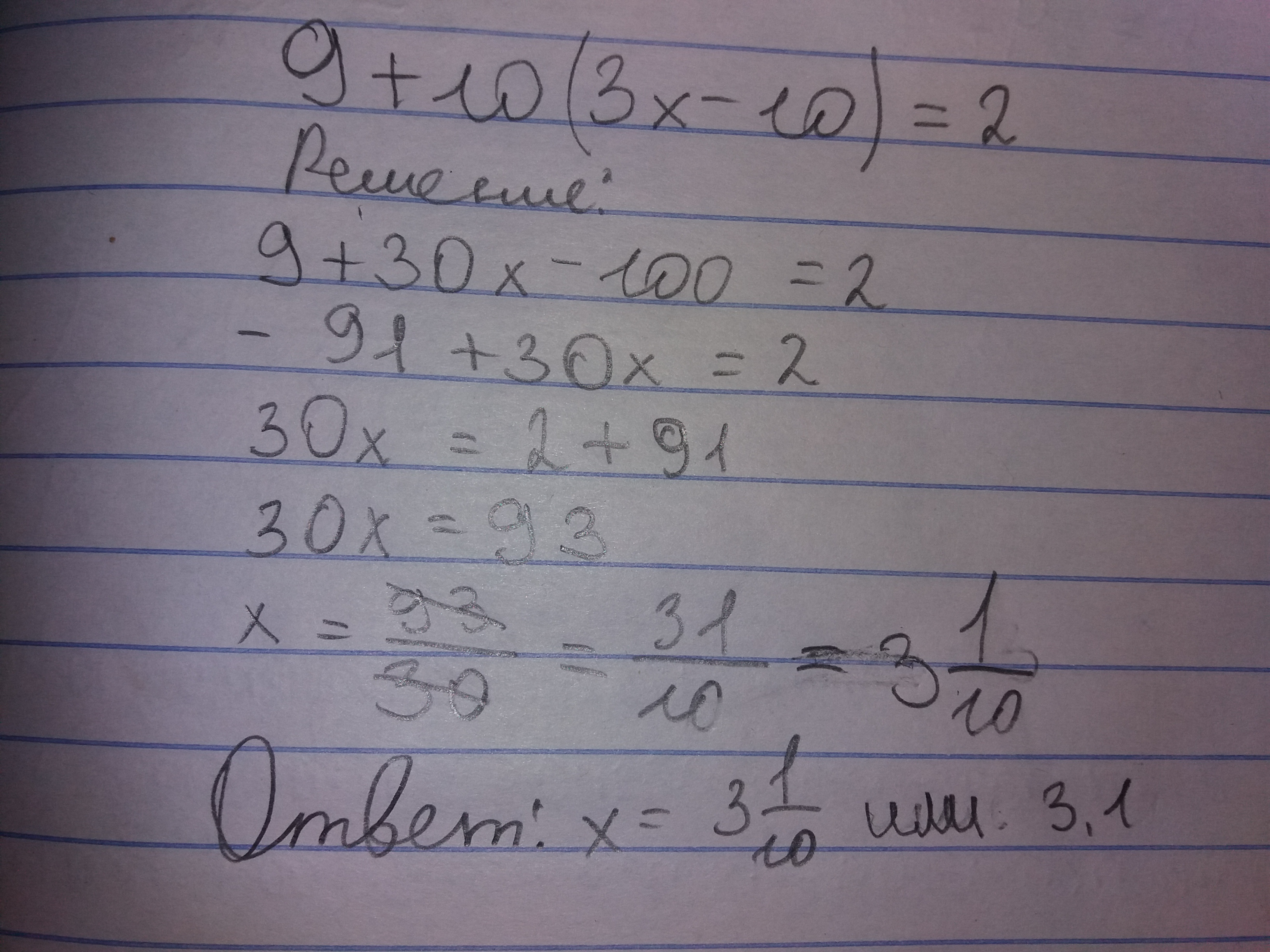 На это 9+10(3х-10)=2 я скидываю фотографией