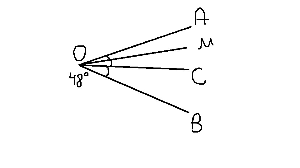 угол АОВ равен 48°. Луч ОС-биссектриса угла АОВ, луч ОМ-биссектриса угла АОС . найдите величину угла АОМ. Указание.Сделайте схематический рисунок.