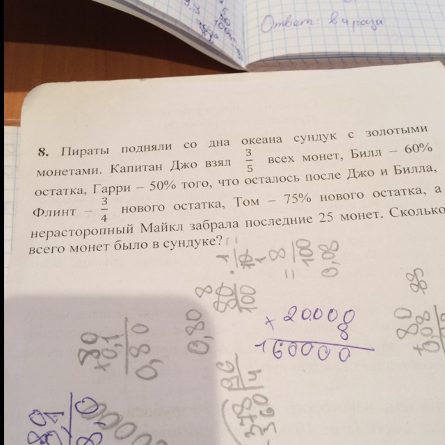 Джо взял 3/5 всех монет, осталось 2000 - это 2/5, значит всего было 5000