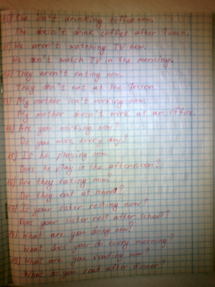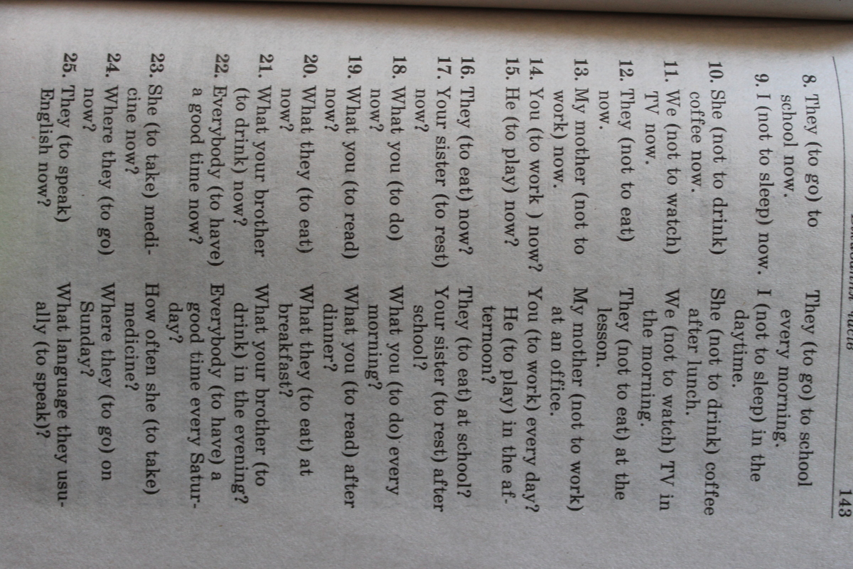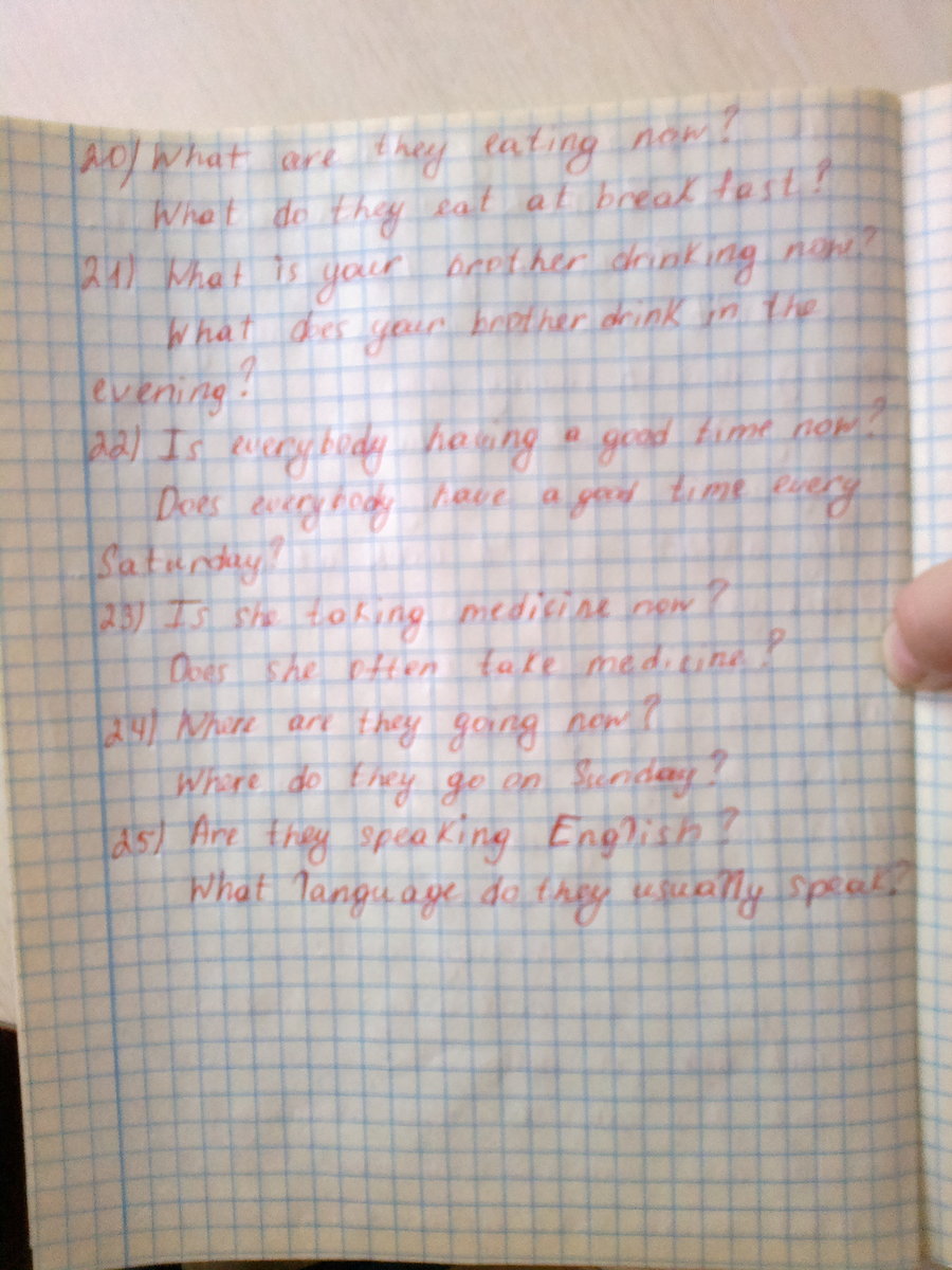 21) What is your brother drinking now? What does your brother drink in the evening?