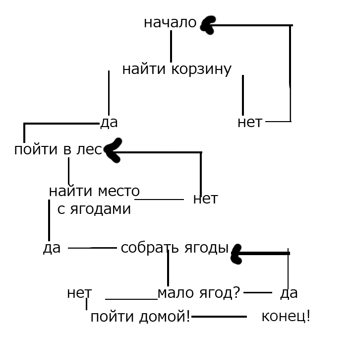 там где пойти в лес там стрелочка , найти место ,,нет,, дальше стрелка, найти место я ягодами