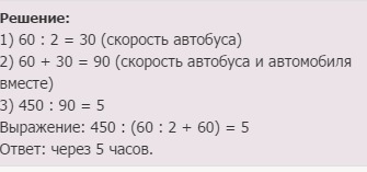 Машина и автобус выехали с автостанции. одновременно в противоположных направлениях. скорость автобуса в два раза меньше скорости автомобиля. через сколько часов расстояние между ними будет 450 км. если скорость автомобиля 60 кмч