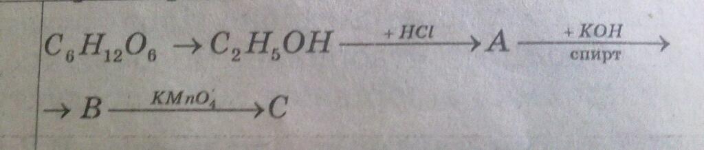 C6H12O6 -> 2C2H5OH+ 2СО2 (спиртовое брожжение)