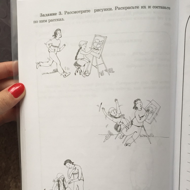 девочка рисовала картину, но мимо пробегал мужчина, который не заметил её, и случайно столкнулся с ней, после чего помог ей встать и собрать её вещи.