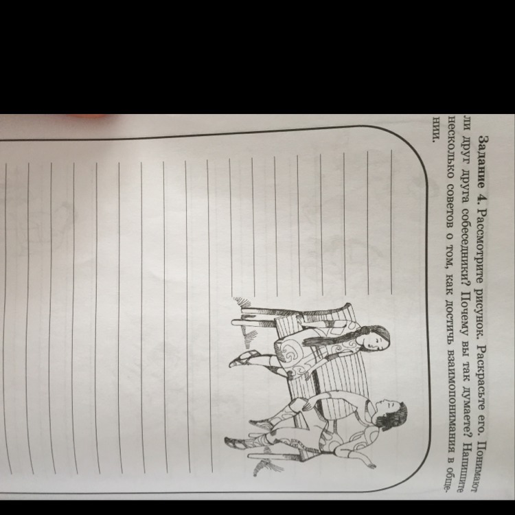 Рассмотрите рисунок. Раскрасьте его. Понимают ли друг друга собеседники? Почему вы так думаете?