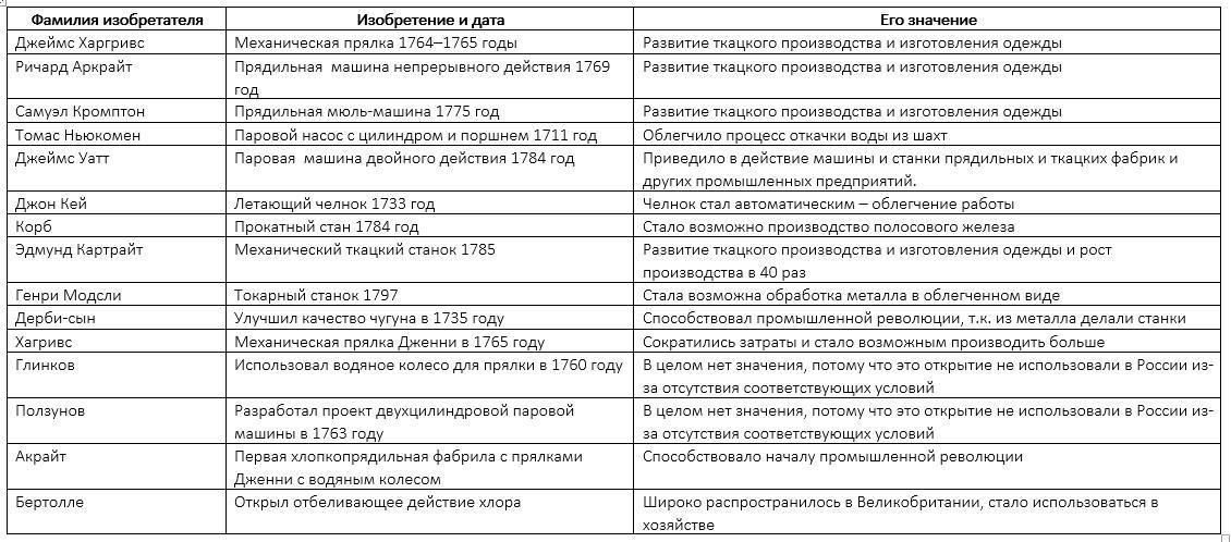 СРОЧНО!!!!! Пожалуйста, составьте таблицу по истории 7 класс "Основные изобретения и открытия начального периода промышленного переворота (до 1789 г.)"