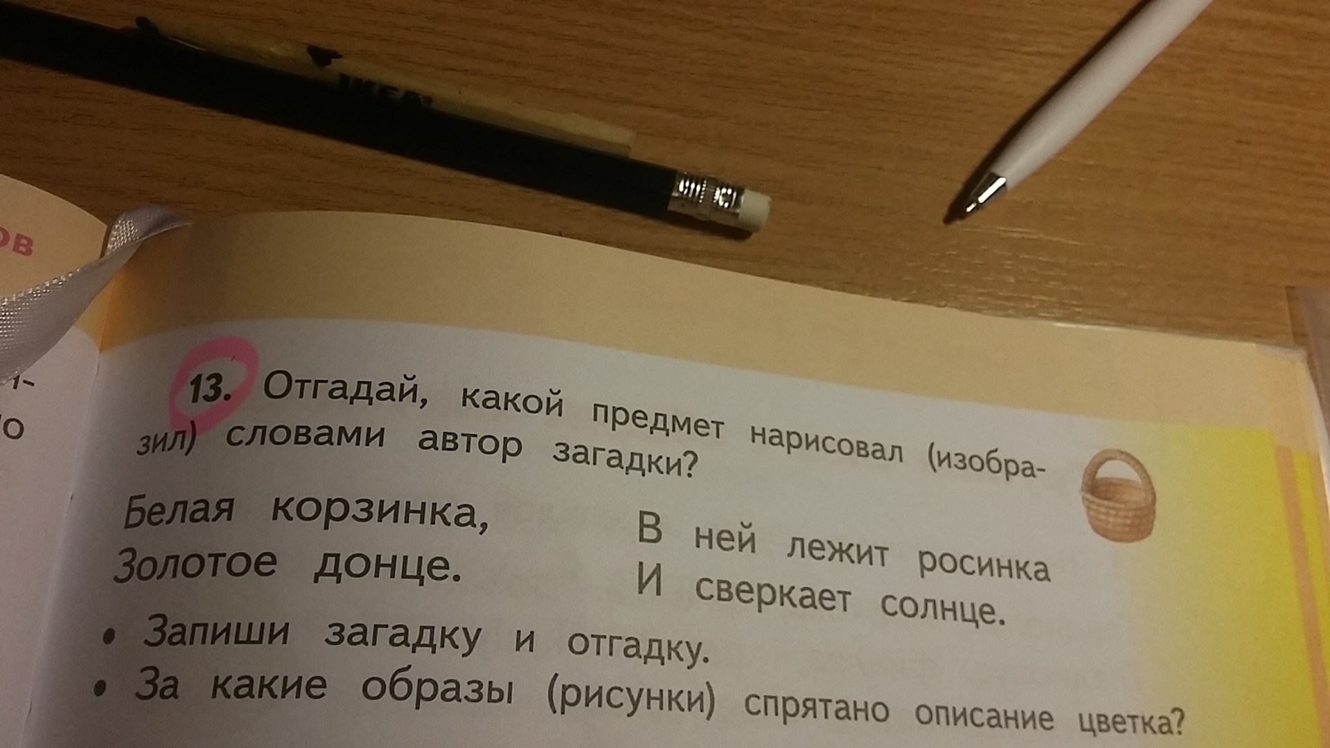 Ответ:Ромашка.В загадке спрятан образ росинки