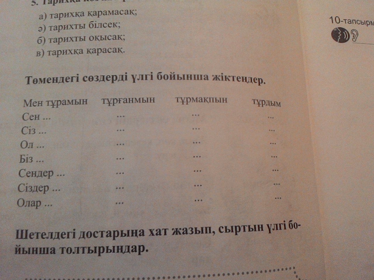 сіз тұрасыз/ тұрғансыз/тұрмақсыз/тұрдыңыз