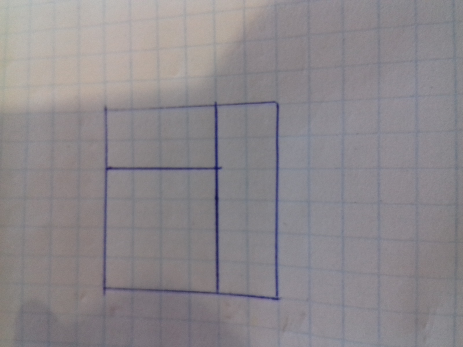 Квадрат, изображенный на листе клетчатой бумаги, разрезали на 3 части. Эти части изображены правее квадрата. Дорисуй в квадрате линии, показывающие, как был разрезан квадрат.