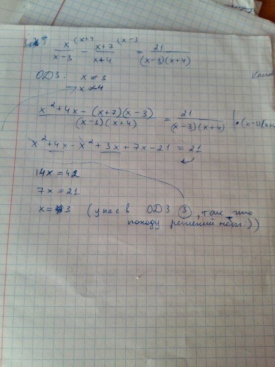 x/(x - 3) - (x + 7)/(x + 4)= 21/(x - 3)(x + 4)