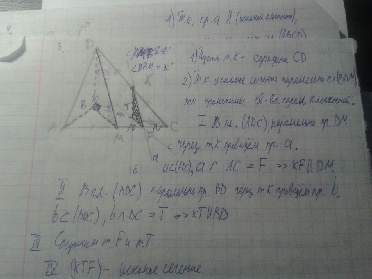 dabc тетраэдр m середина ac k середина dc постройте сечение плоскостью проходящей через точку K параллельно плоскости (DBM)