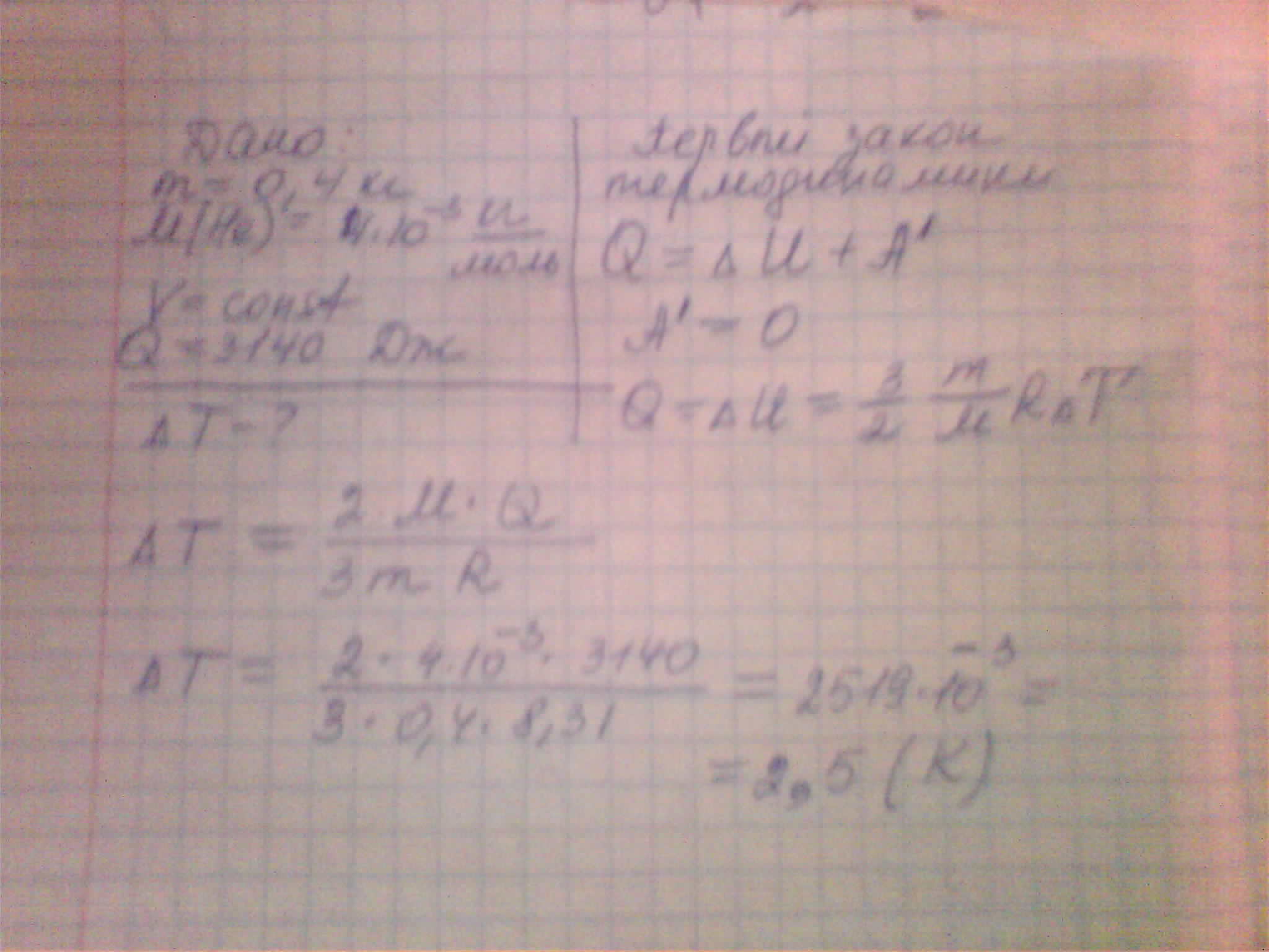 при нагревании 400 г гелия при постоянном объеме было затрачено 3140 дж теплоты на сколько градусов был нагрет газ?