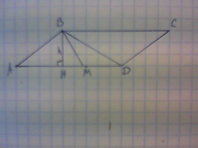 ВН=h -высота параллелограмма, ВD - другая диагональ параллелограмма.