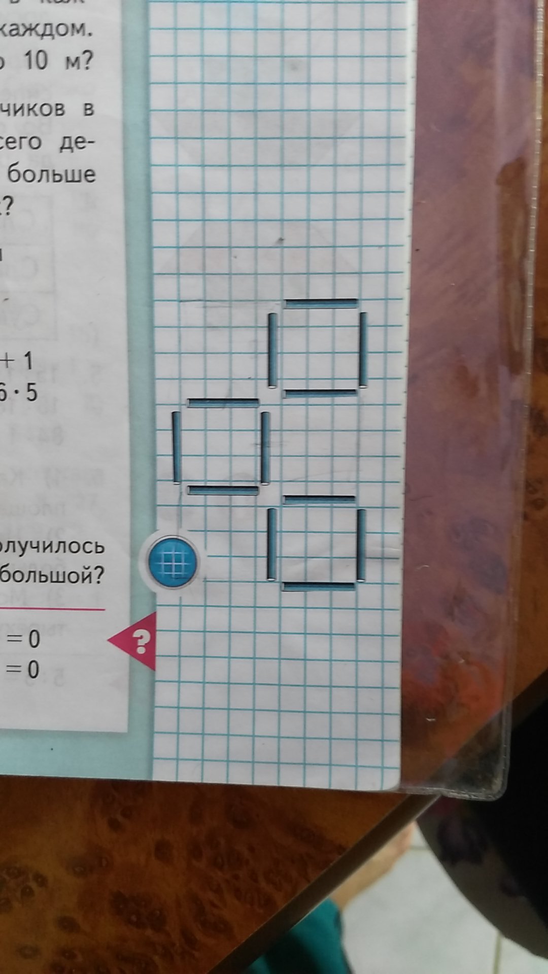 как переложить 3 палочки, чтобы получилось 4 маленьких одинаковых квадрата и 1 большой ?