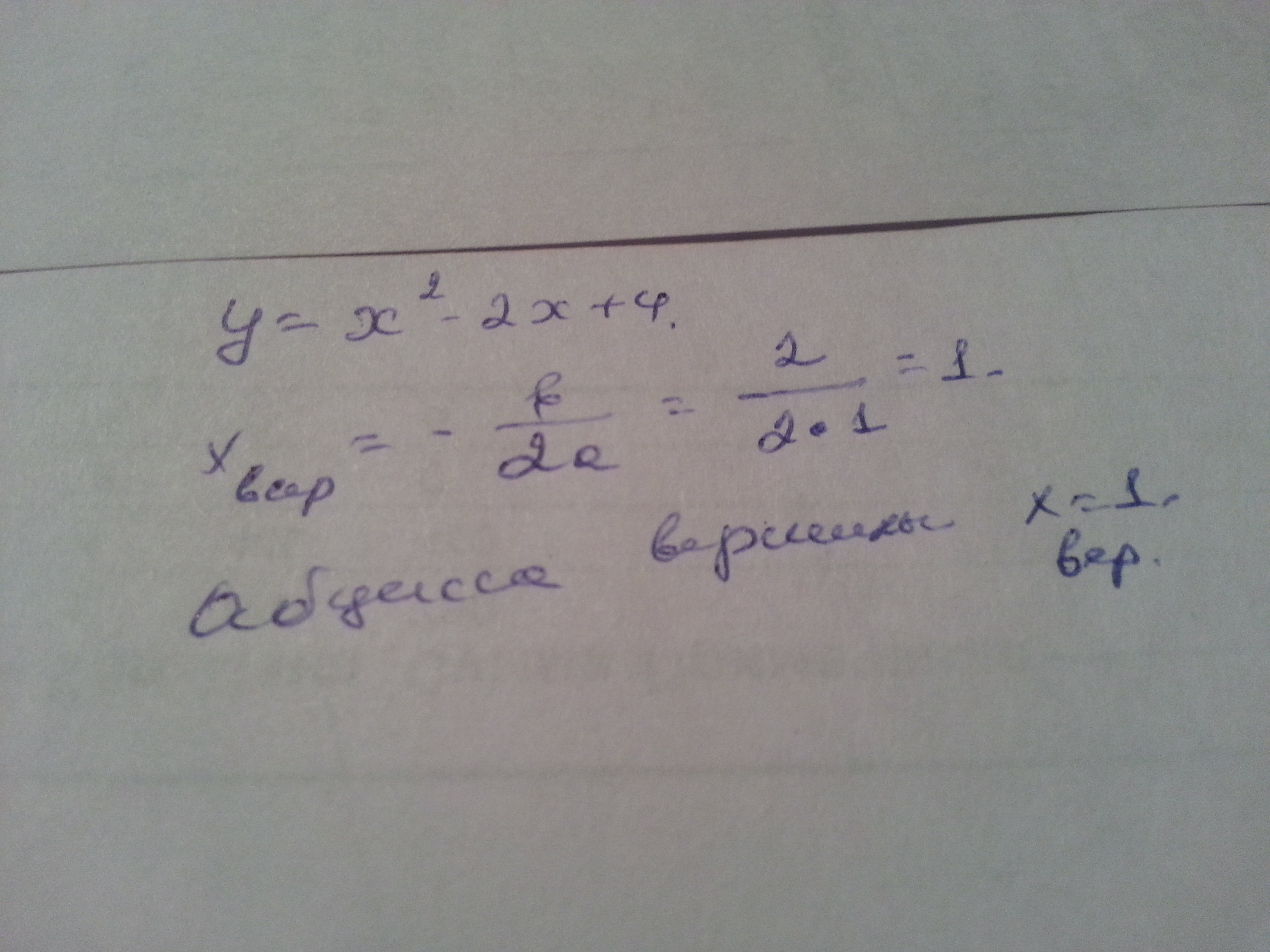 Найдите абсциссу вершины параболы у= х^2-2х+4