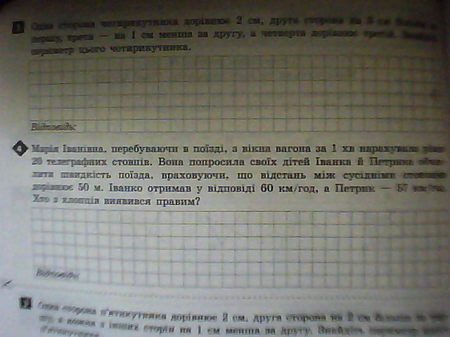 Марія Іванівна, перебуваючи в поїзді, з вікна вагона за 1 хв нарахувала рівно 20 телеграфних стовпів. Вона попросила своїх дітей Іванка й Петрика обчислити швидкість поїзда, враховуючи, що відстань між сусідніми стовпами дорівнює 50 м. Іванко отримав у відповіді 60 км/год, а Петрик - 57 км/год. Хто з хлопців виявився правим?Допоможіть даю 24 бали.....