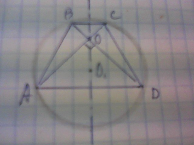 диагонали равнобокой трапеции пересекаются под прямым углом Найти расположение центра окружности описанного вокруг трапеции относительно трапеции