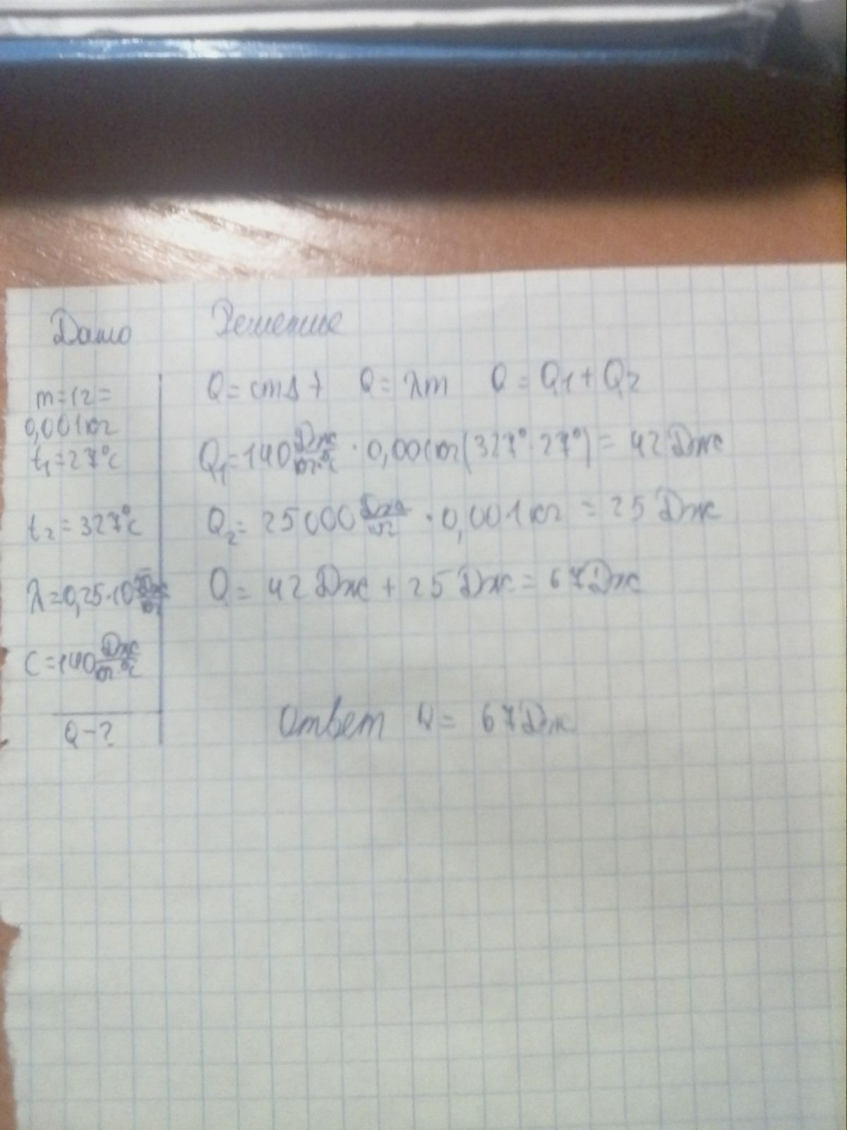 Какое количество теплоты потребуется Для нагривания и плавления 1г свинца, началная температура которого 27°с. (с дано, Зарание спасибо =*)