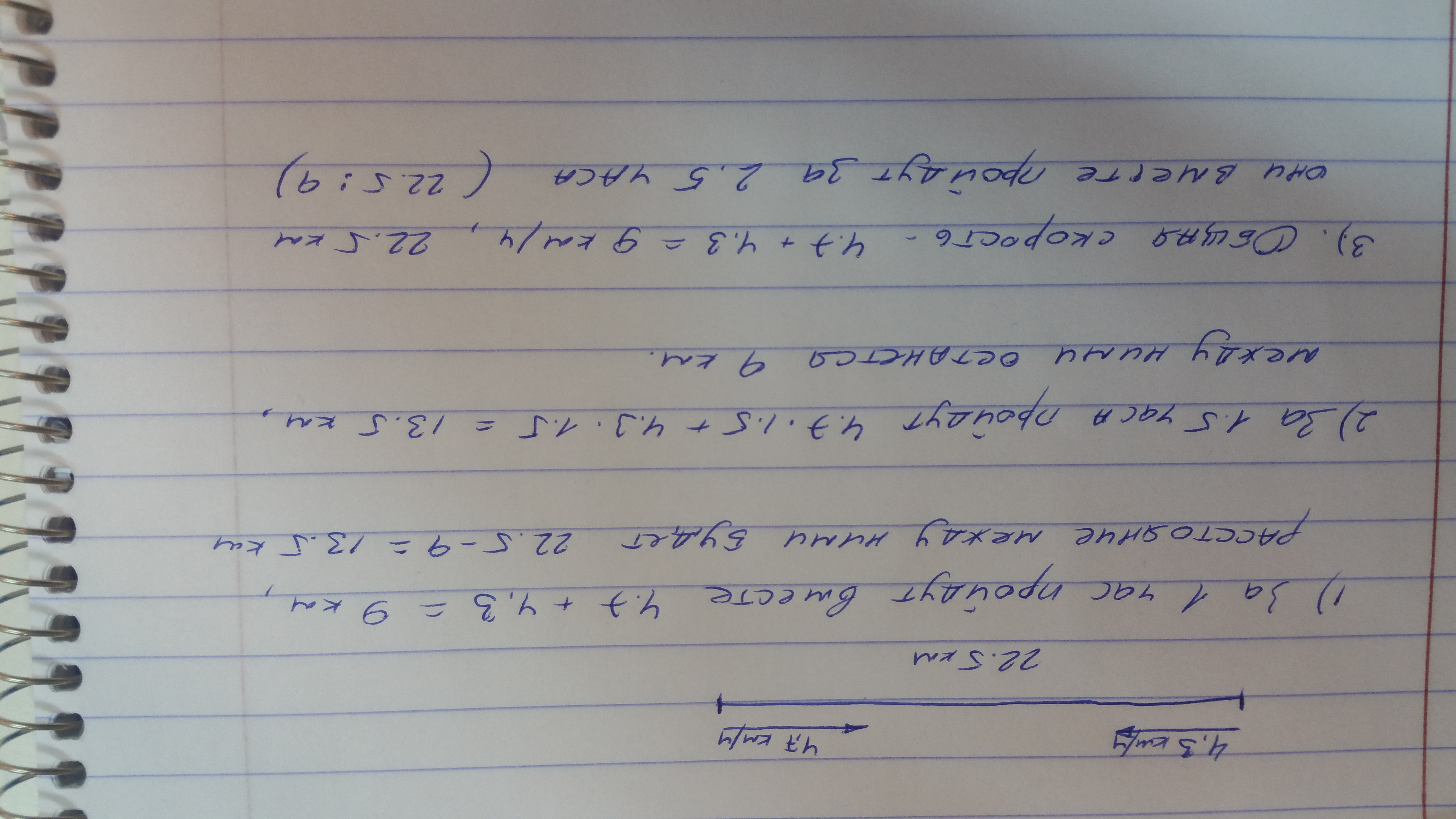 22,5-9=13,5(км)