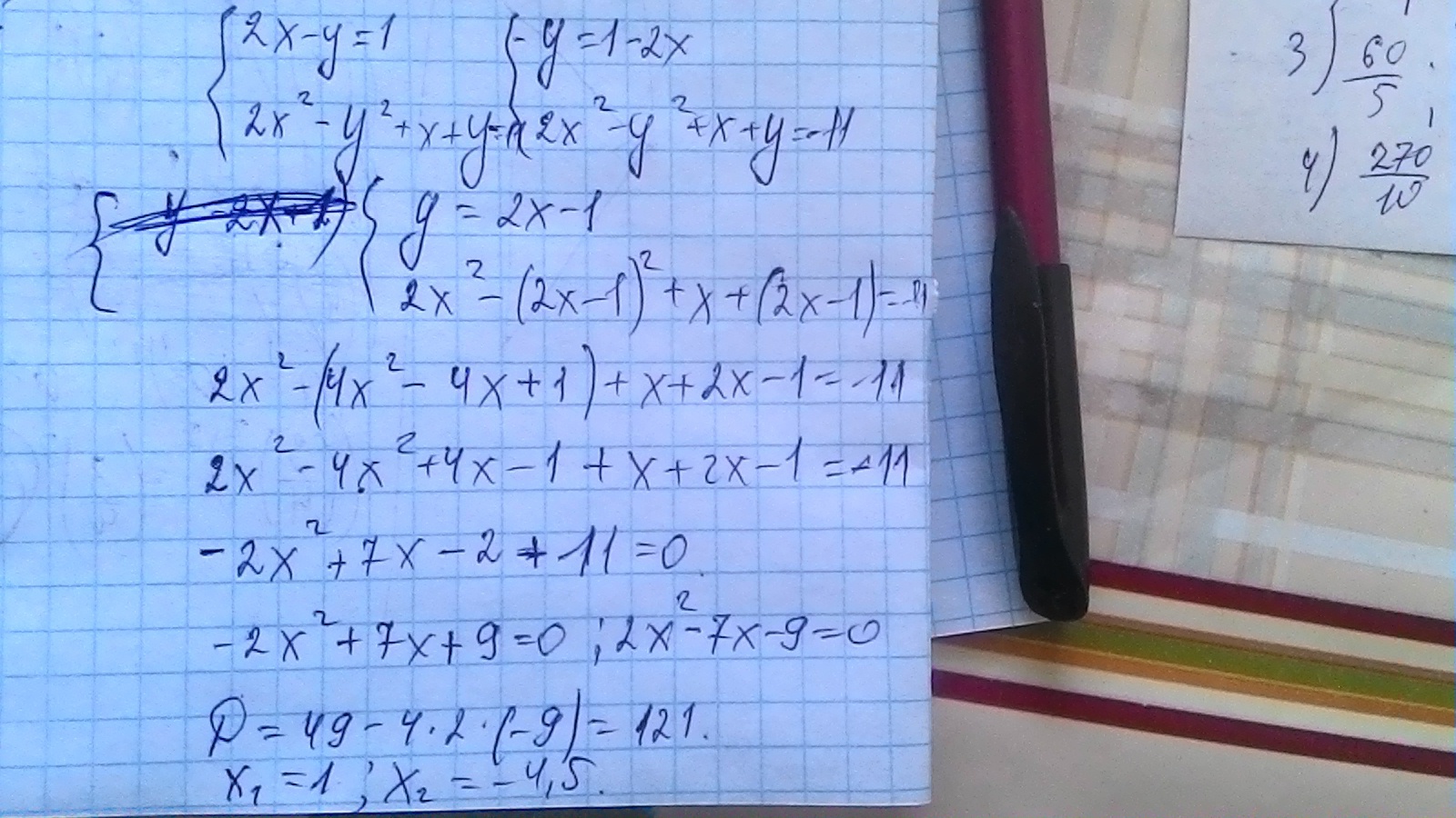 в ответе х1=1,х2=-4,5