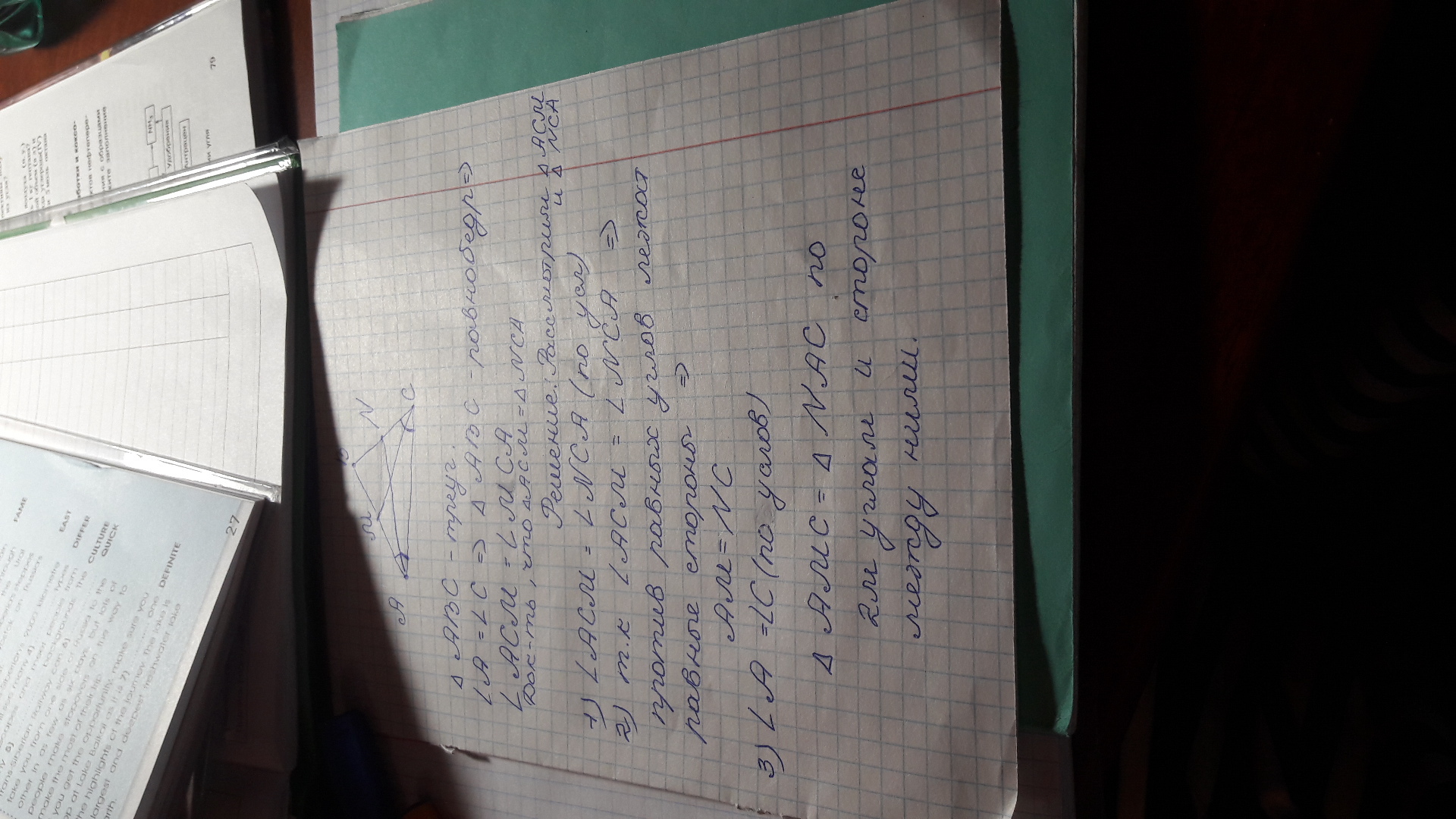 В треугольнике АВС ∠А=∠С. На стронах АВ и СВ отложены соответственно точки М и N так что ∠АСМ=∠NАС. Докажите что треугольник АNВ= треугольнику СМВ