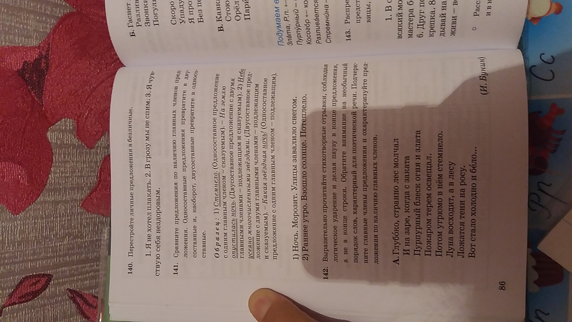 Ночь.(Односоставное предложение с одним главным членом-подлежащее),морозит.(Односоставное предложение с одним главным членом-сказуемое),улицы завалило снегом.(Двусоставное предложение с двумя главными членами-улицы завалило),ранее утро.(Односоставное предложение с одним главным членом-утро)