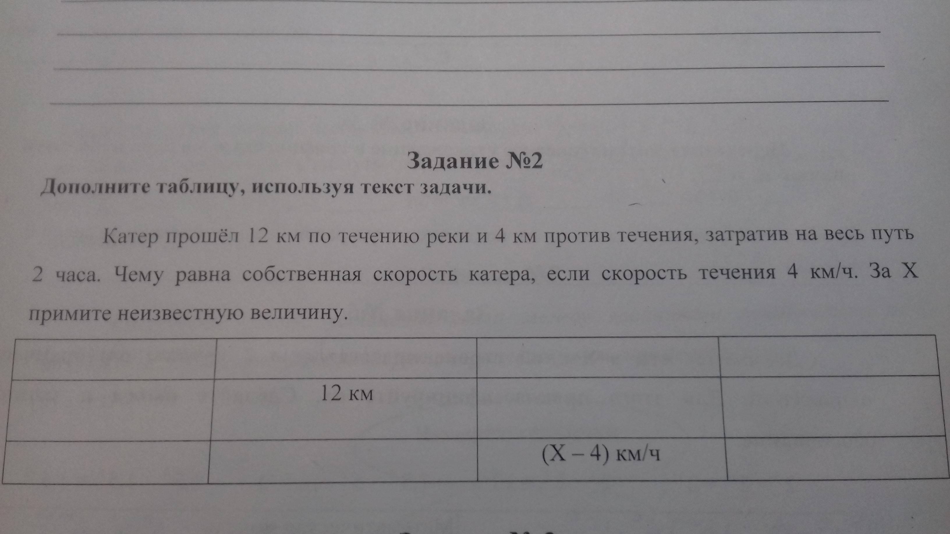 По условию известно, что на весь путь катер затратил 2 часа. Составим уравнение: