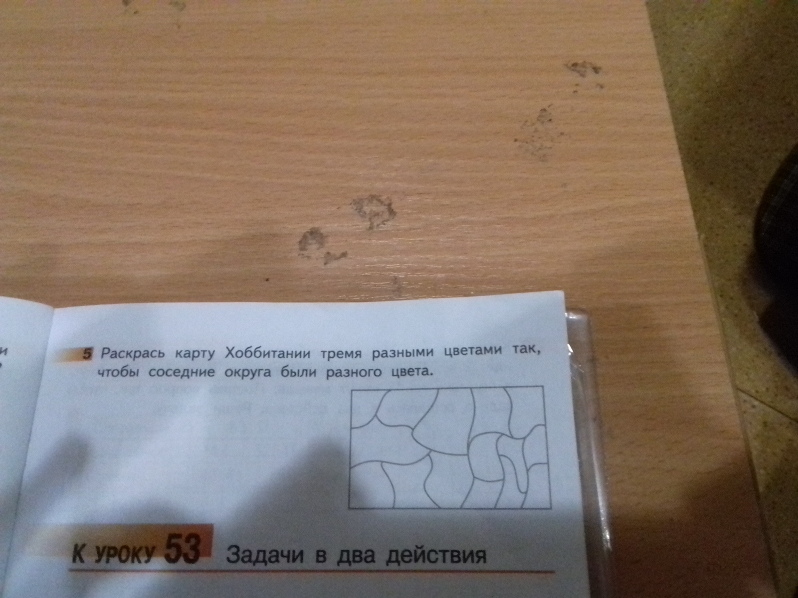 раскрась карту Хоббитании тремя разными цветами так,чтобы соседние округа были разного цвета.