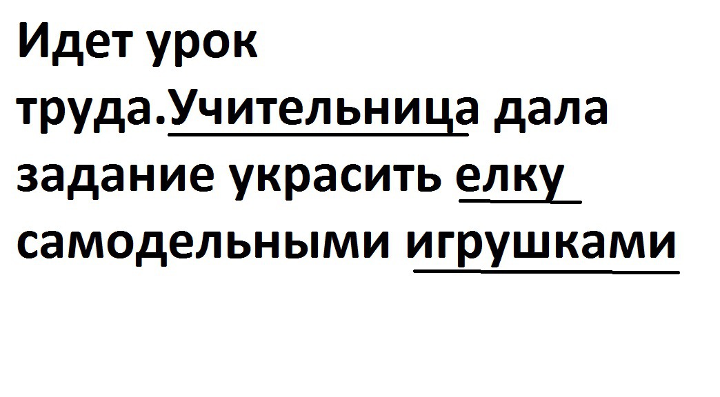 Подчеркни имена существительные первого склонения Идет урок труда.Учительница дала задание украсить елку самодельными игрушками