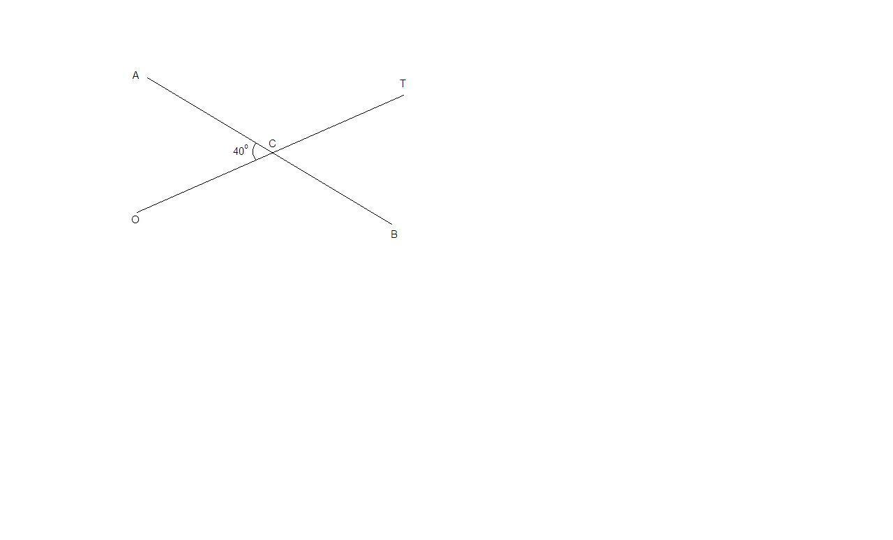 Прямые AB и OT пересекаются в точке C, угол ACO=40°. Сделайте чертеж. Найдите угол BCT, угол ACT, угол BCO.
