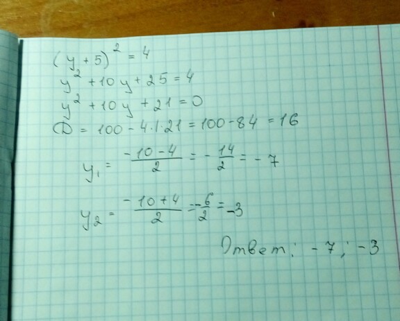 Другой способ - Решить по теореме Виета. Подобрать такие два x, чтобы их сумма = -b, произведение = c. Очевидно, это -7, -3: -7+(-3)=-(-10)=10, (-7)*(-3)=21