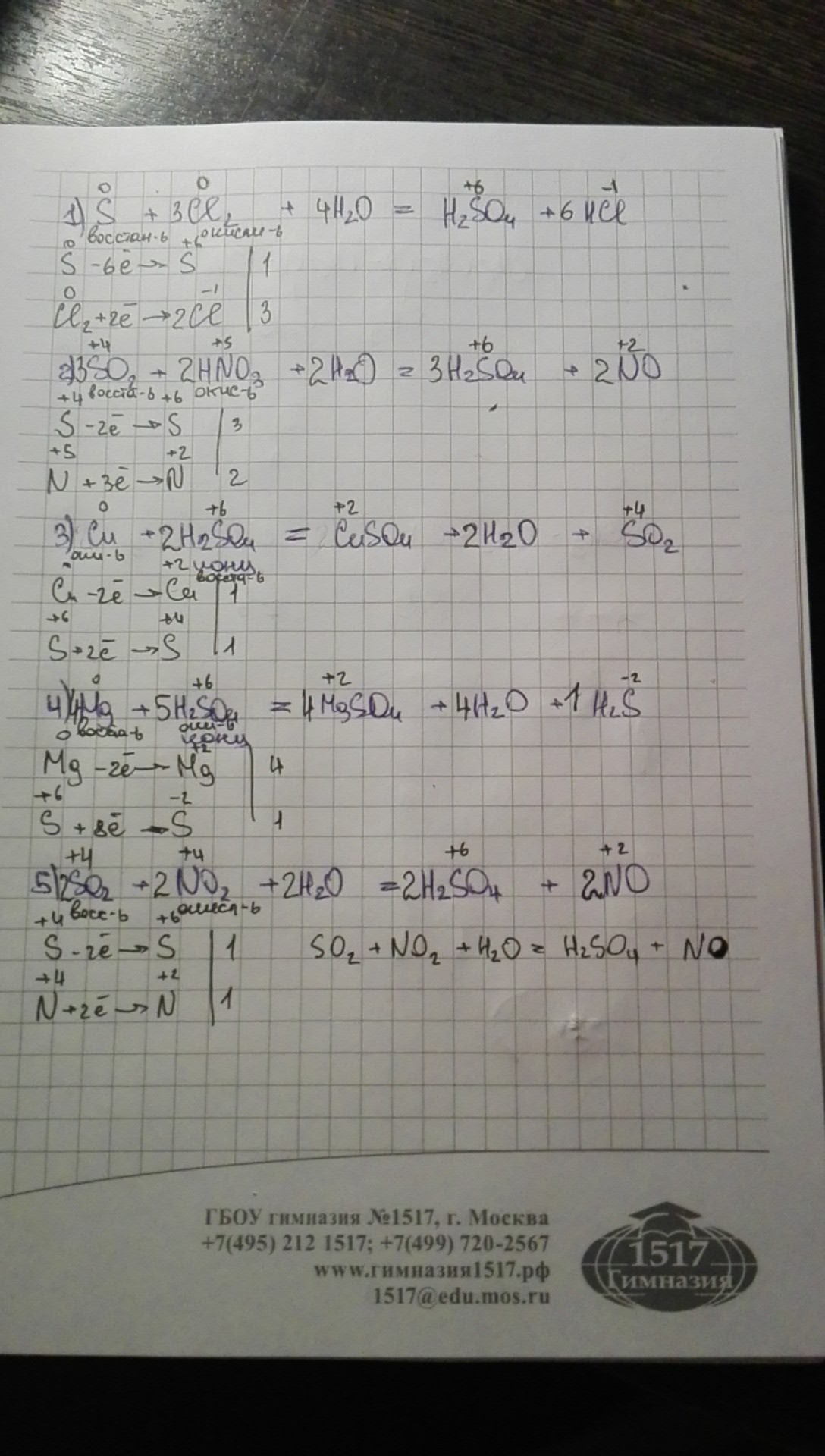1) S(тв.) + Cl2 + H2O= H2SO4 + HCl