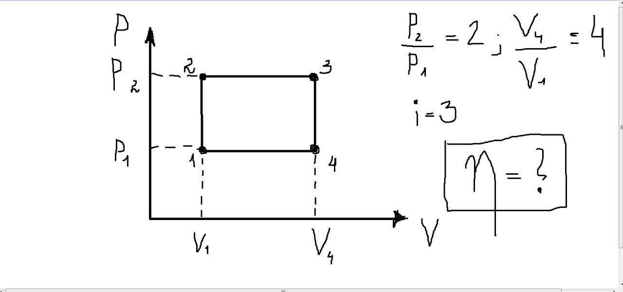 Qз=Q12+Q23=КПД=3*P1*V1/16.5*P1*V1=0.1818=18,2%