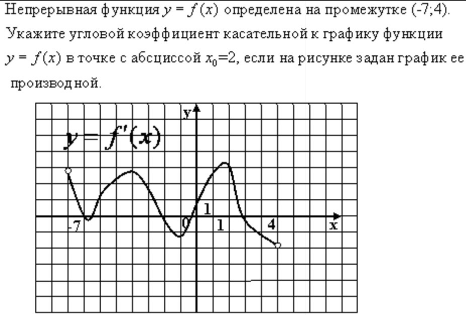 Производная функции в какой-то определенной точке равна угловому коэффициенту касательной, проведенной в этой точке к графику функции.