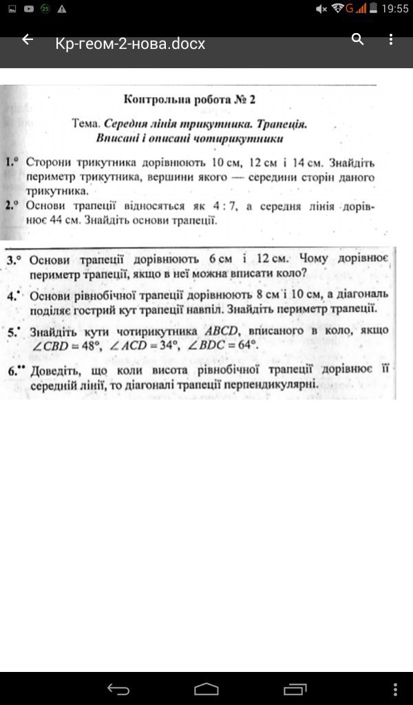 Основы трапеции относятся к 4:7, а средняя линия 44 см. Найдите основы трапеции.