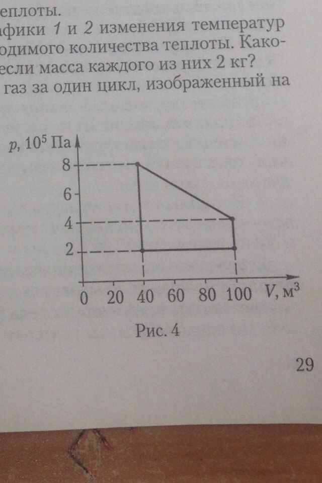 Какую работу совершает газ за один цикл, изображённый на рис.4?