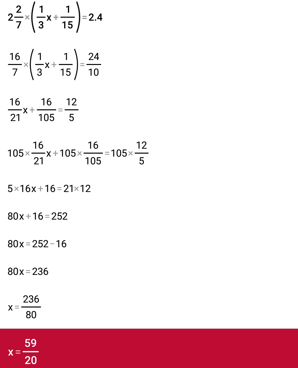 б) 2 целых 2/7*(1/3x + 1/15 )= 2,4