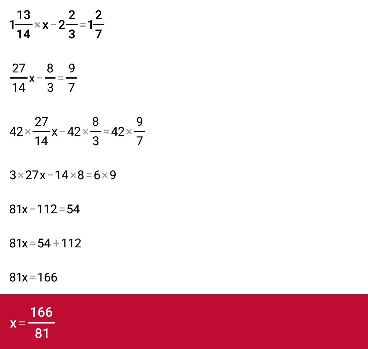 а) 1 целая 13/14x- 2 целых 2/3 = 1 целая 2/7
