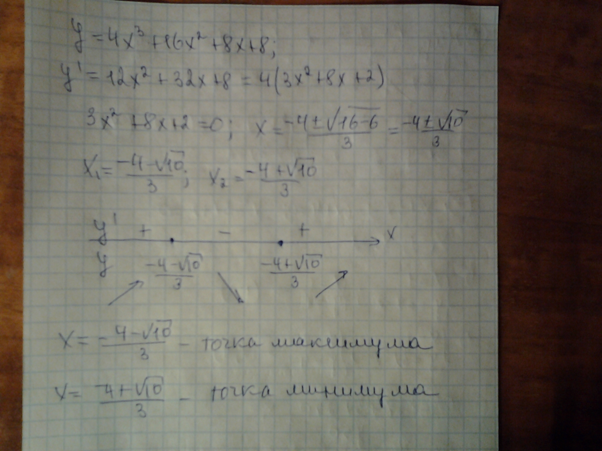 Найдите точки экстремума заданной функции и определите их характер: y=4x^3+16x^2+8x+8 Помогите, как решать такие примеры?